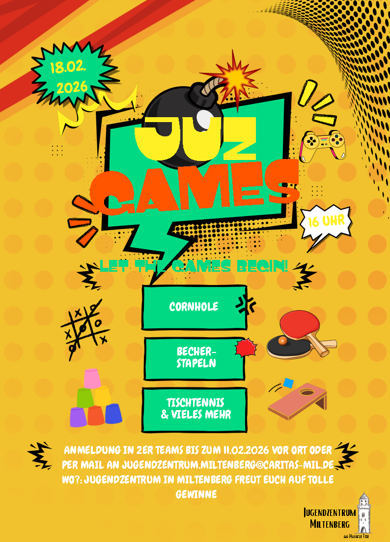 Eine Anmeldung in 2er Teams ist bis zum 11.02.2026 vor Ort oder per Mail an Jugendzentrum.Miltenberg@caritas-mil.de möglich.