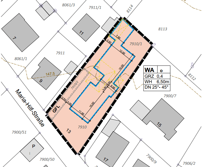 Der Bauausschuss der Stadt Miltenberg hat in seiner Sitzung vom 02.06.25 die Einleitung eines Verfahrens zur Änderung des Bebauungsplanes „Im Söhlig“ für das Grundstück Fl.Nr. 7910 (jetzt geteilt in Fl.Nrn. 7910, 7910/1 und 7910/2) Gemarkung Miltenberg (Maria-Hilf-Str. 13) mit dem Ziel der Schaffung von zwei Baurechten beschlossen. Der Bauausschuss hat den Planentwurf in seiner Sitzung vom 13.10.25 gebilligt.